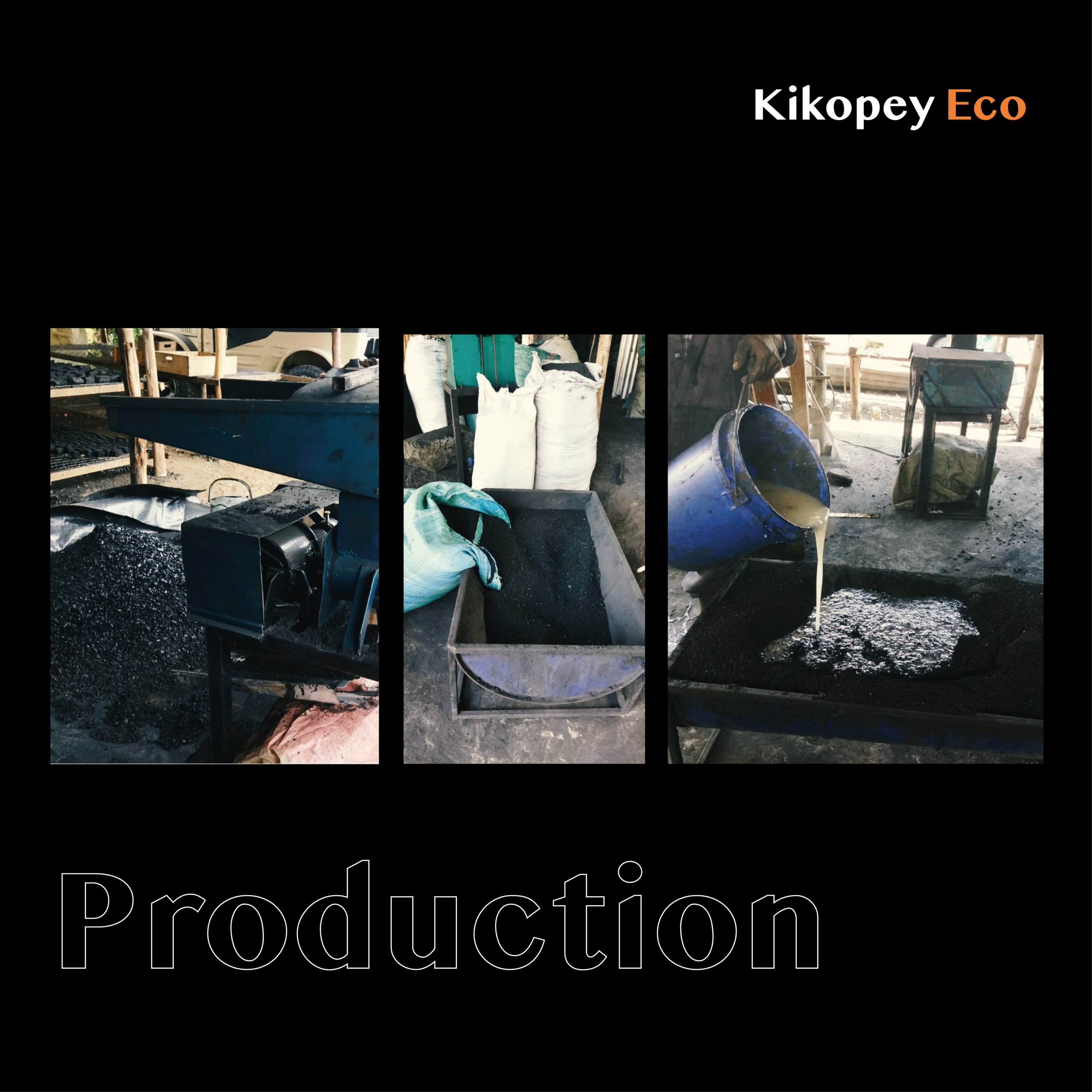 Carole: Je fabrique des briquettes à partir de chardust en utilisant un liant de déchets de manioc. La poussière de charbon est collectée localement à Nakuru et les déchets de manioc des meuniers locaux. Nous disposons de trois jours de tri, de tamisage et de concassage pour préparer la chardust à la production. Après avoir préparé les matières premières, il nous faut deux jours pour la fabrication et le séchage. Lorsque nous ne produisons pas, le personnel trie et prépare les matières premières. Les commandes groupées sont emballées dans des sacs Poly tandis que les ventes au détail sont à la fois dans des sacs Poly et des sacs kaki. Tous nos produits portent la marque Briquettes de charbon écologique Kikopey.